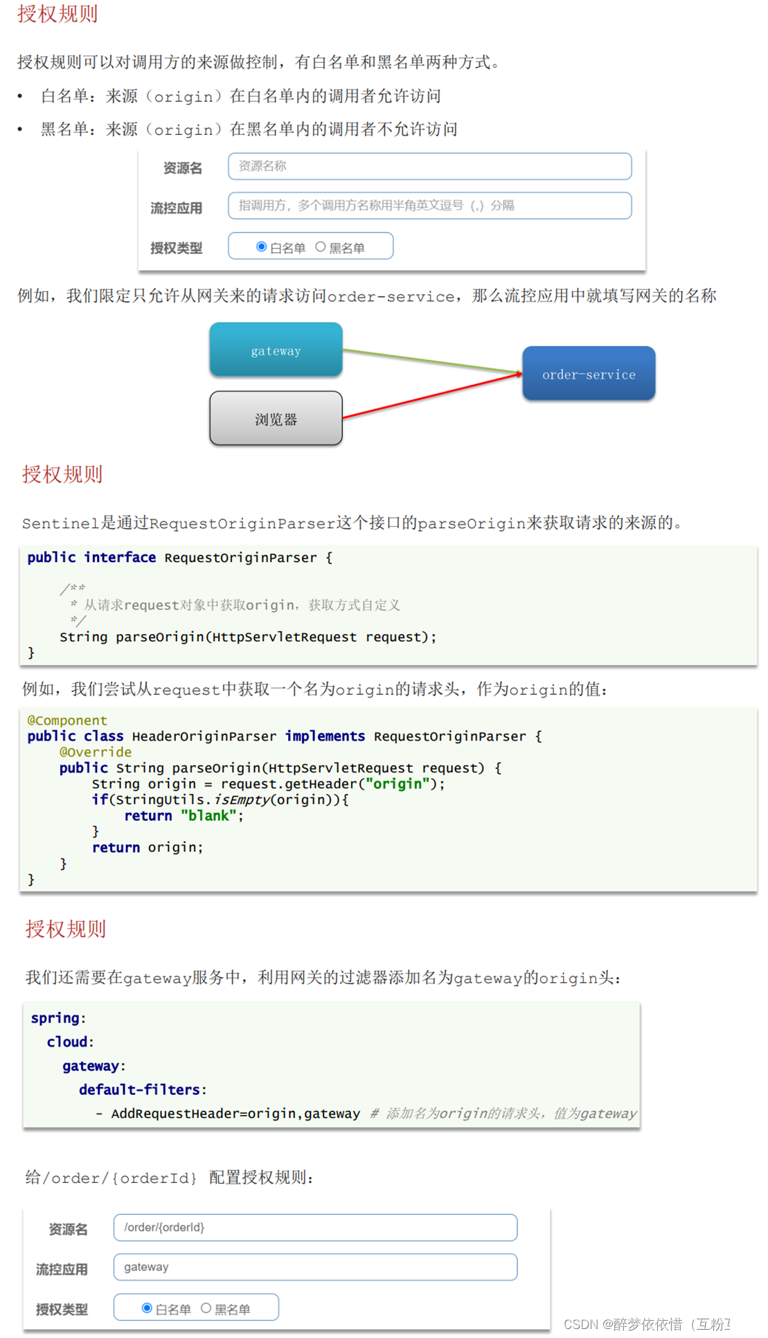 授权规则:可以做身份验证,网关也可以身份验证,但是万一泄露了微服务的地址,那么别人可以绕过网关,直接访问微服务,该授权规则就是拦截不是从网关过来的请求。