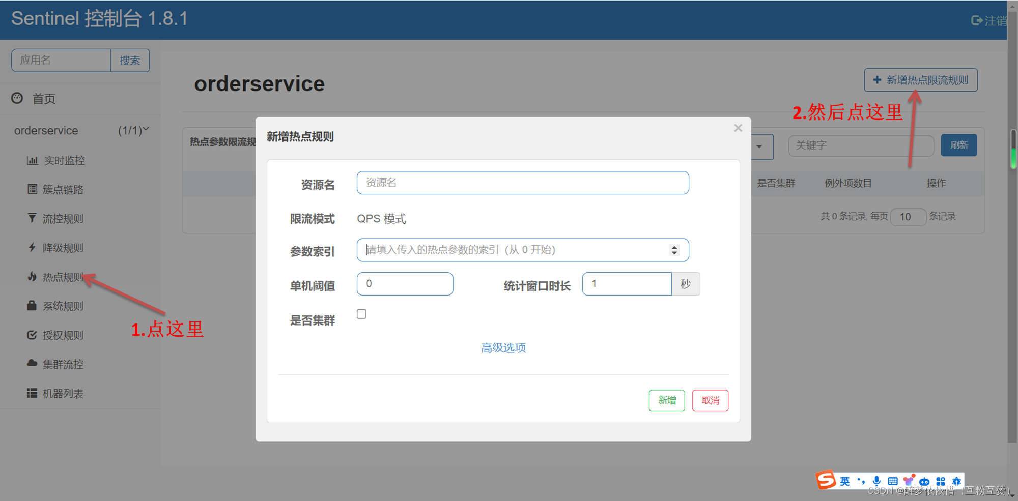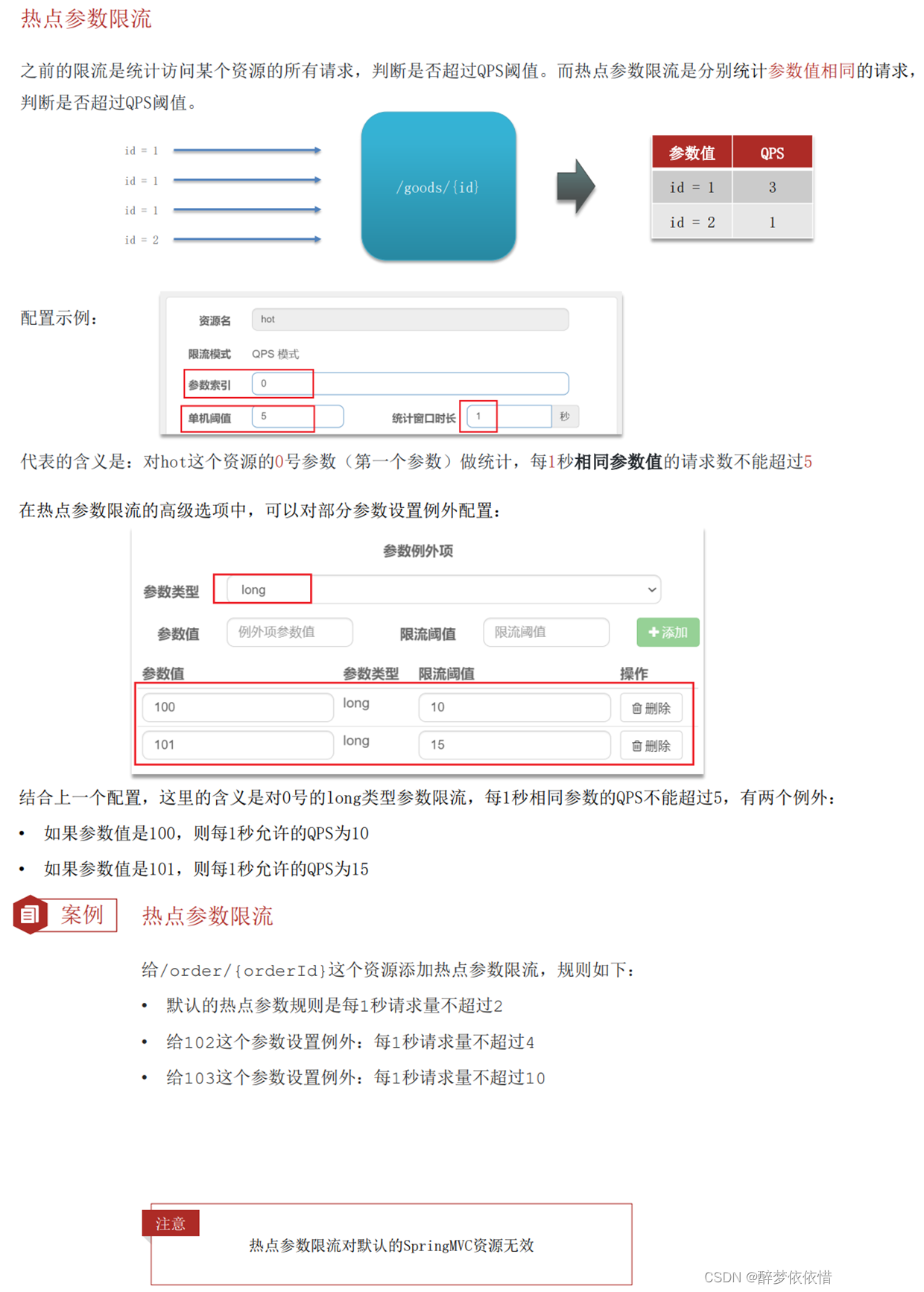 热点参数限流对默认的SpringMVC资源无效:解决方法就是给springmvc的方法加上@SentinelResource("hot")注解,里面的hot是给这个资源起的名称。