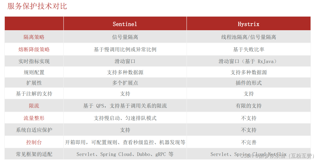 提示:前三种是处理出现故障的微服务避免故障传递从而导致雪崩,第四种是预防雪崩,就是还没发生故障的。