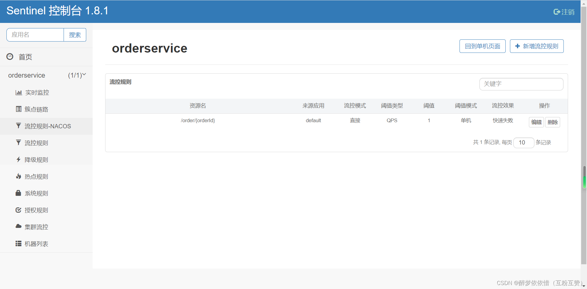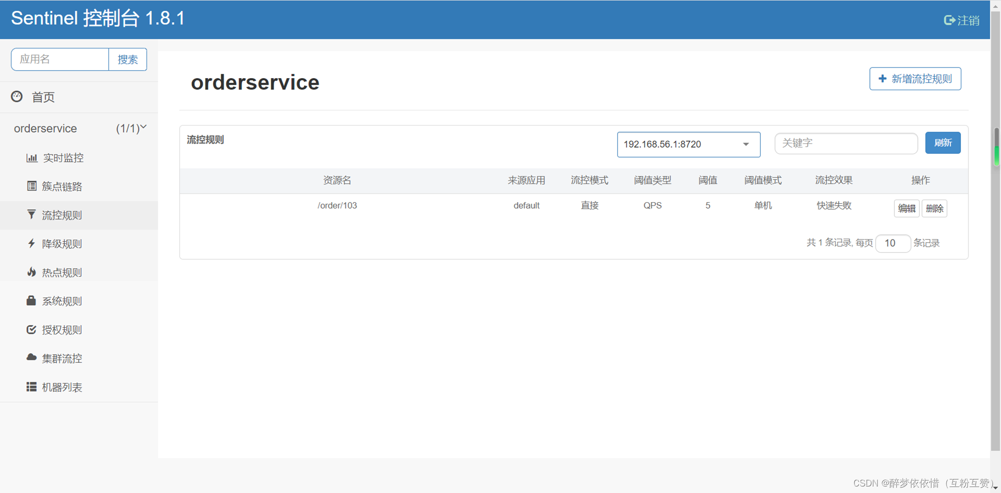 解析:下方的流控应用填写的名称是实现的RequestOriginParser接口的parseOrigin方法的返回值(当然也可以写其他,可操作空间挺大的),当返回值与流控应用的值一样时,则允许访问,否则拒绝访问。