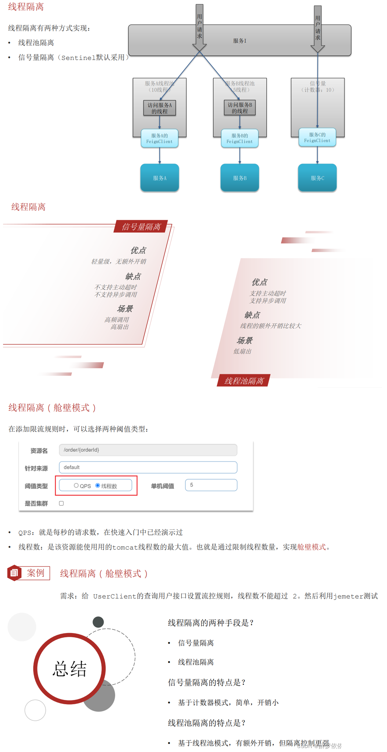 (3.2)线程隔离(舱壁模式)(线程池隔离、信号量隔离)。