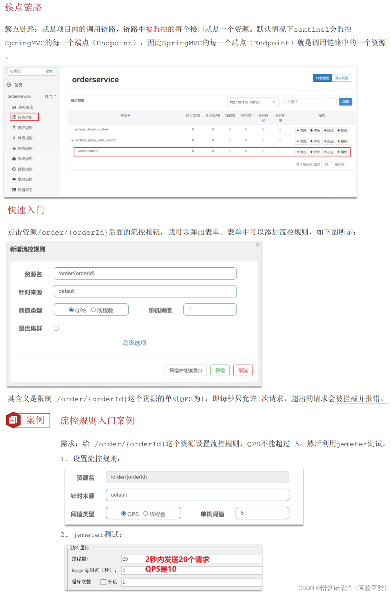 链路:就是对请求来源进行限流。(例如:有ABC三个资源,A和B都要访问C,在统计资源C的时候,只统计某个入口资源,如A或B,如果超过阈值,则限流C)