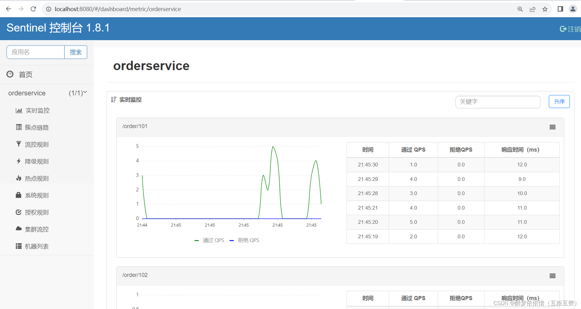 提示:整合好之后,启动项目后,需要访问过服务器之后,在sentinel里面才能看到显示 。