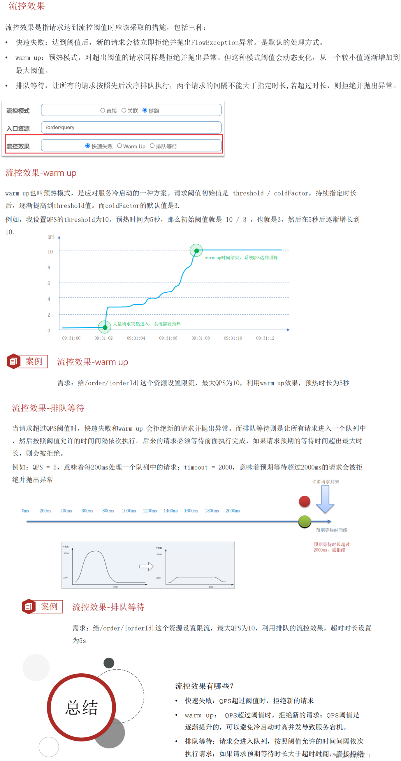 (2.3)流控效果(快速失败、warm up、排队等待)。
