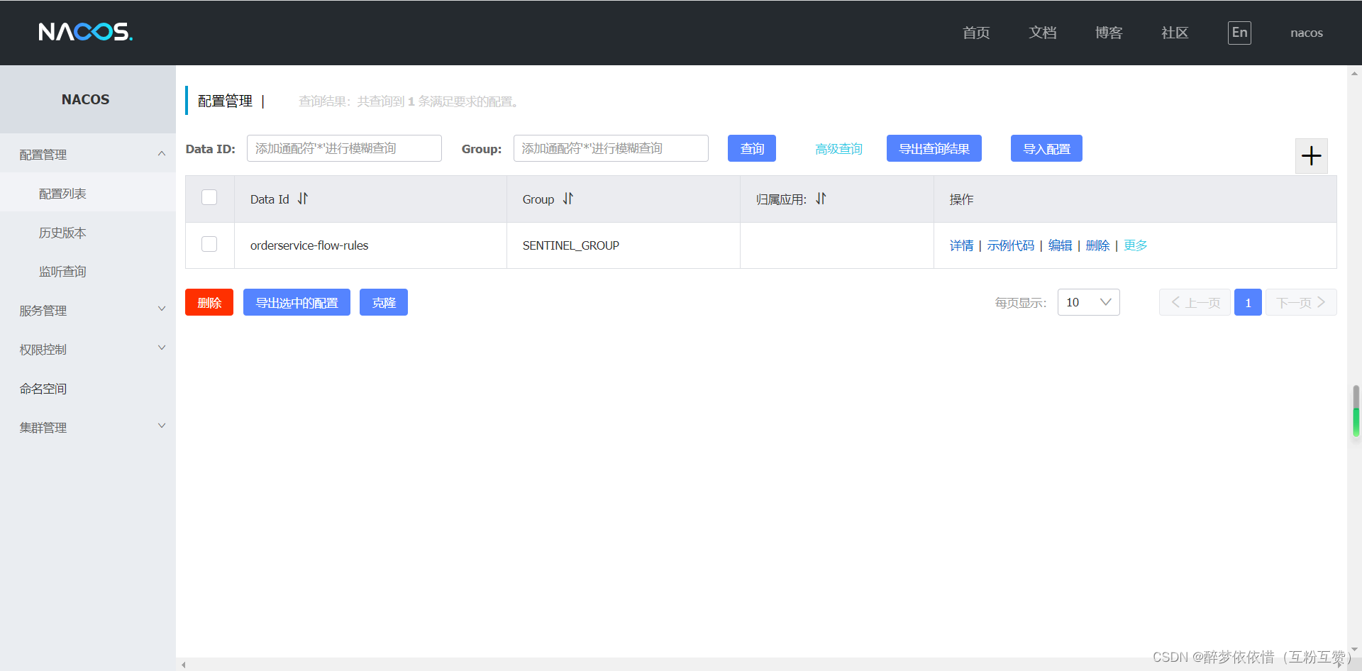 添加持久化的流控规则后,去nacos控制台看配置列表:多出了一个配置文件。