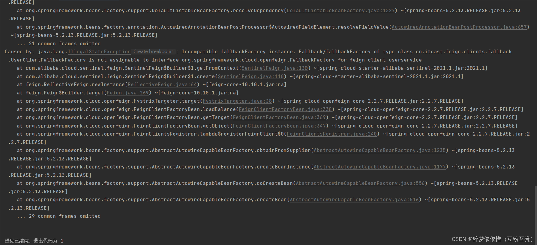 版本兼容的解决办法:在为userClient注入feign的接口类型时,添加@Lazy注解。