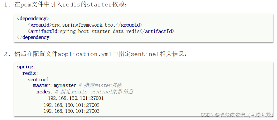 注意: 该哨兵集群基于主从集群部署的(因为监控的是主从集群)。
