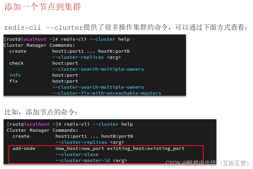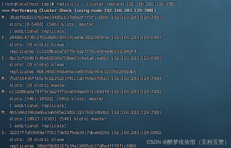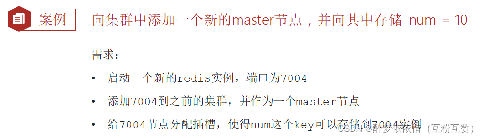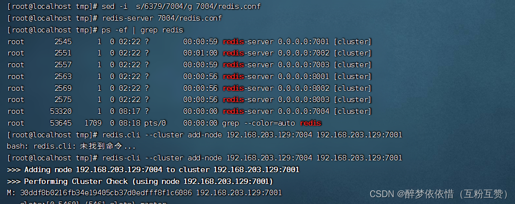 redis-cli --cluster add-node 192.168.203.129:7004 192.168.203.129:7001命令添加的是一个新的主节点。它会从指定的源节点(IP 地址为 192.168.203.129,端口号为 7001)获取集群的信息,并将新节点添加到集群中。