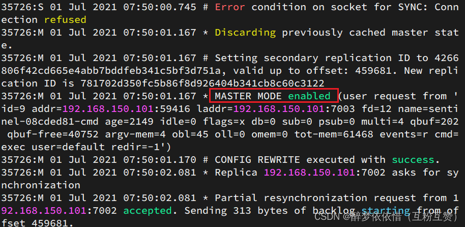 sentinel monitor mymaster 192.168.150.101 7001 2:指定主节点信息