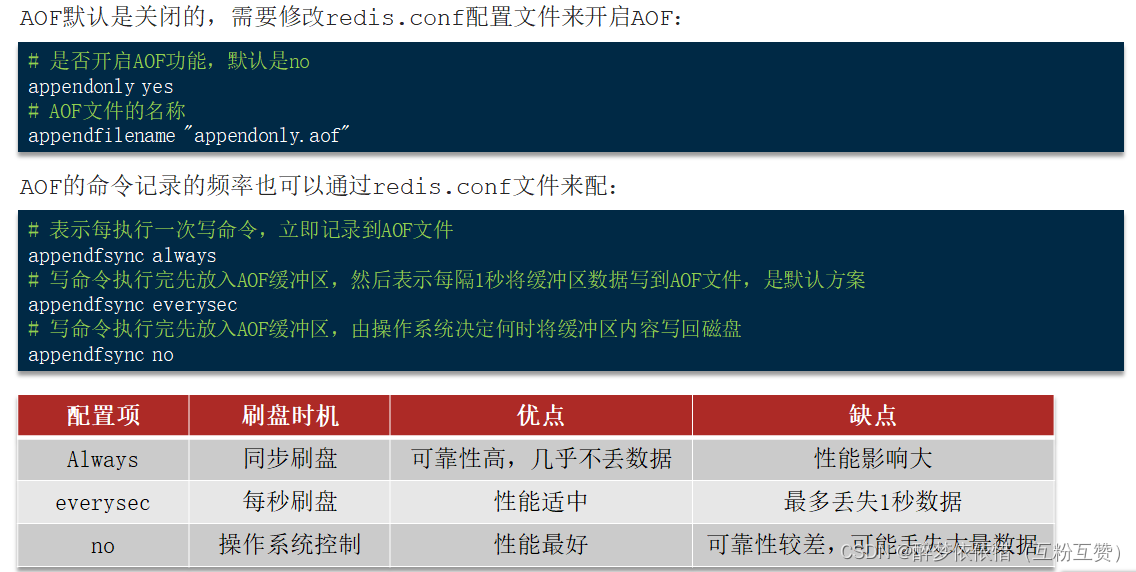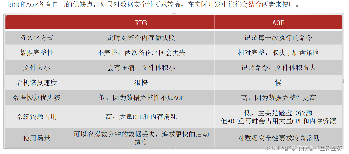 3)RDB和AOF的对比。