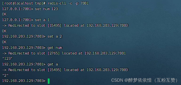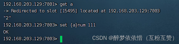 get num,再执行set num 666利用redis-cli连接7003,执行