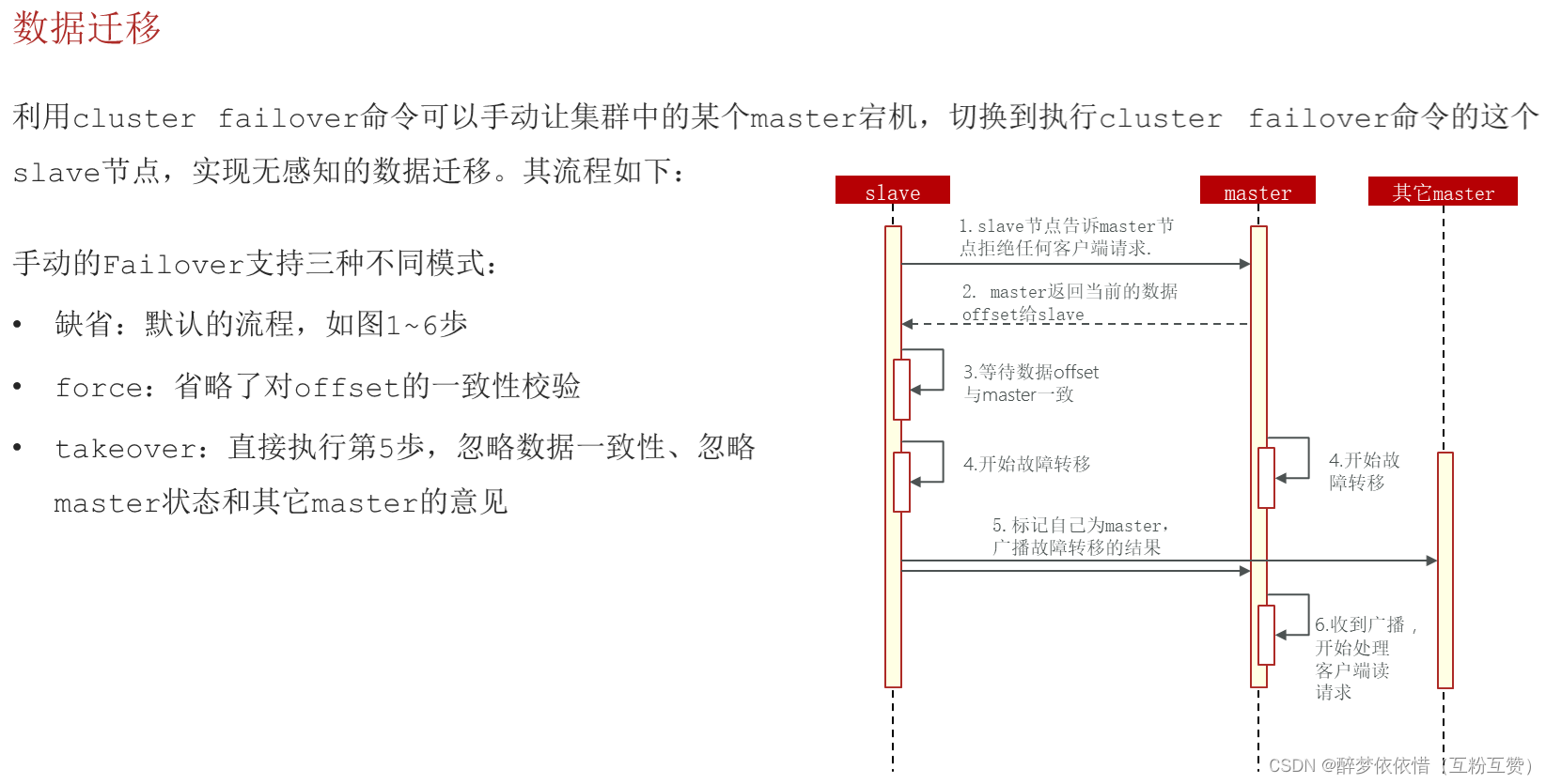 使用cluster failover后从节点变成主节点,主节点变成从节点。