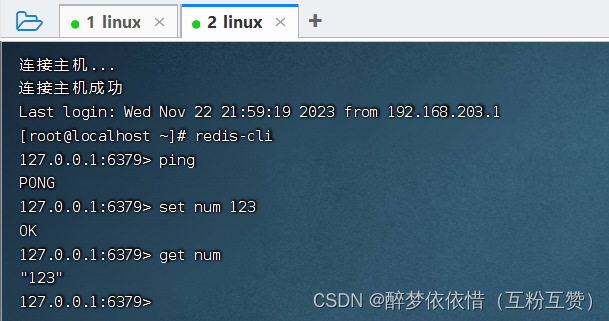 redis-server redis.conf远程连接linux系统,然后允许redis的客户端redis-cli。