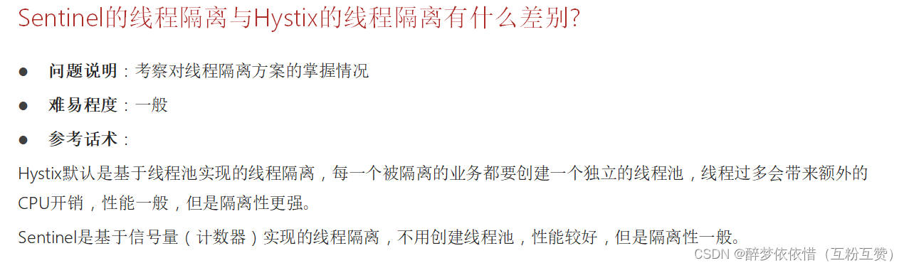 八、Sentinel的线程隔离与Hystix的线程隔离有什么差别?