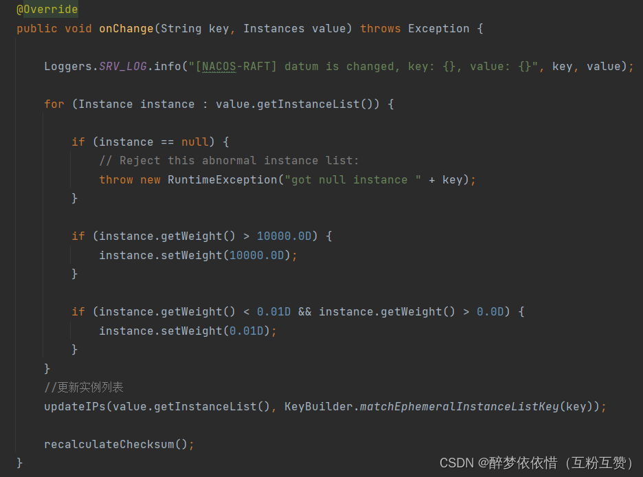 下面的onChange方法是service类的方法,即服务对象自己更新服务列表。