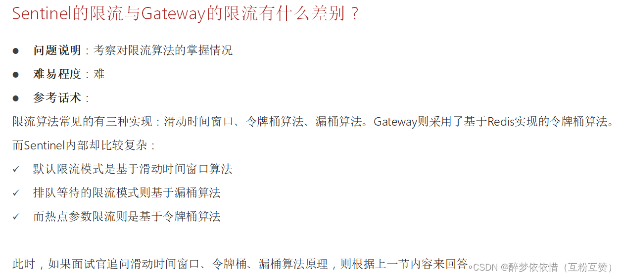 七、Sentinel的限流与Gateway的限流有什么差别?