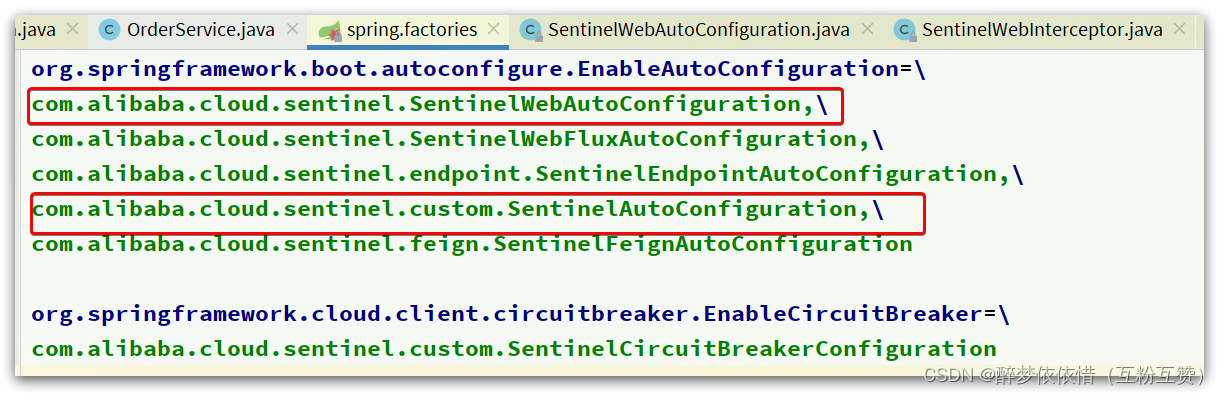 其中的spring.factories声明需要就是自动装配的配置类,内容如下: