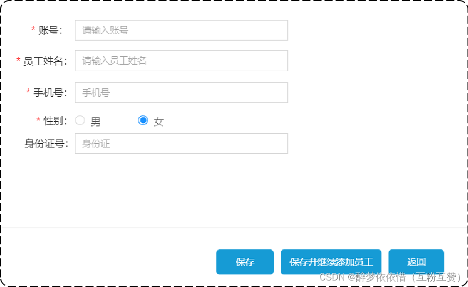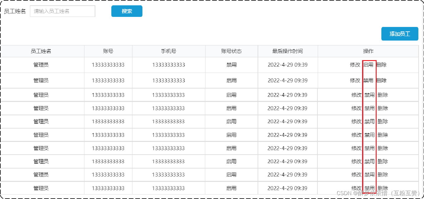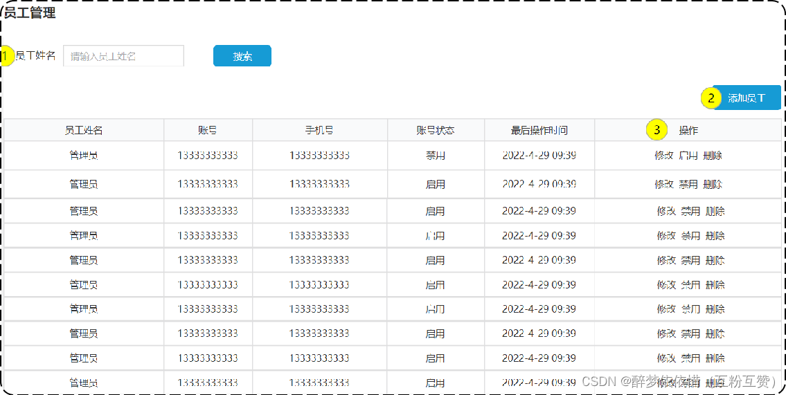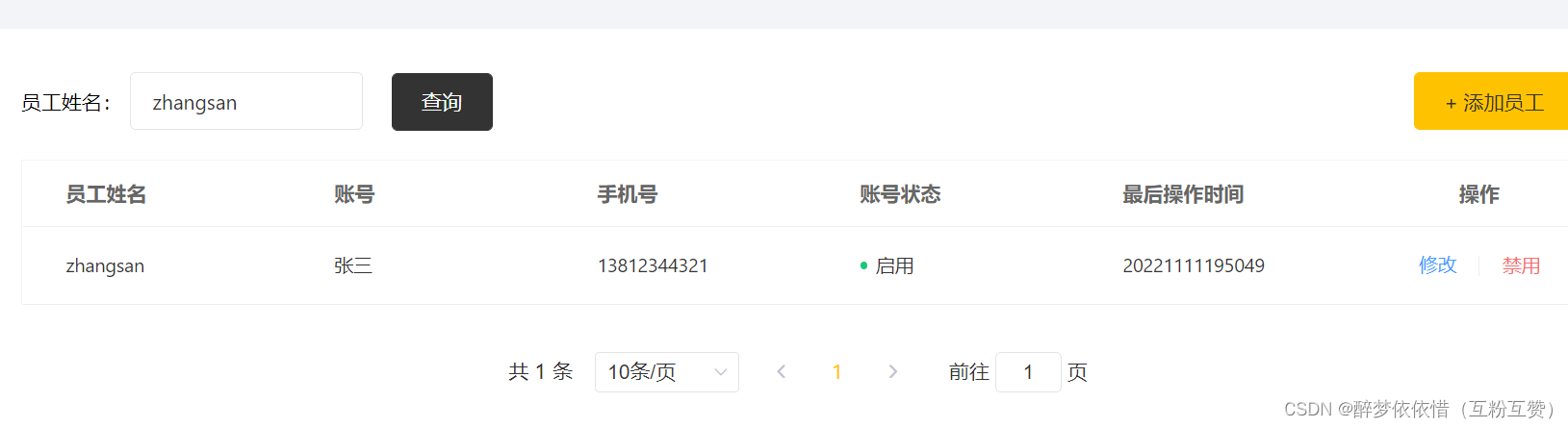 后台系统中可以管理员工信息,通过新增员工来添加后台系统用户。