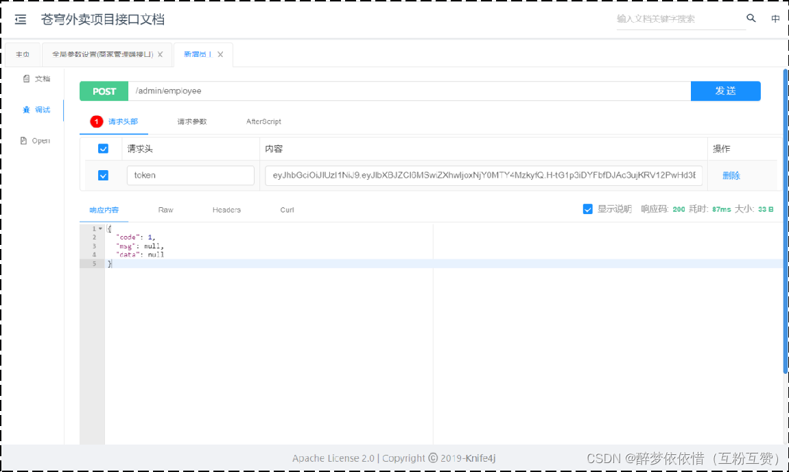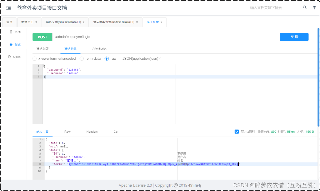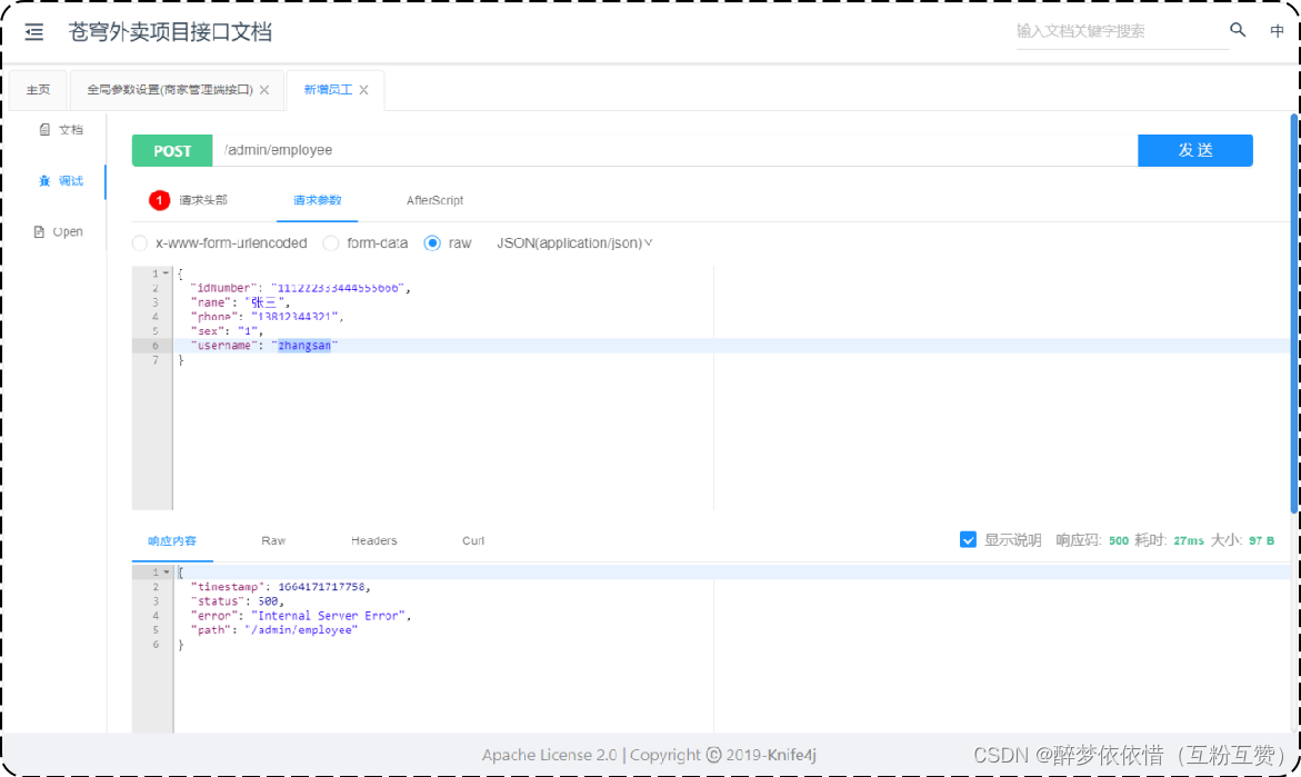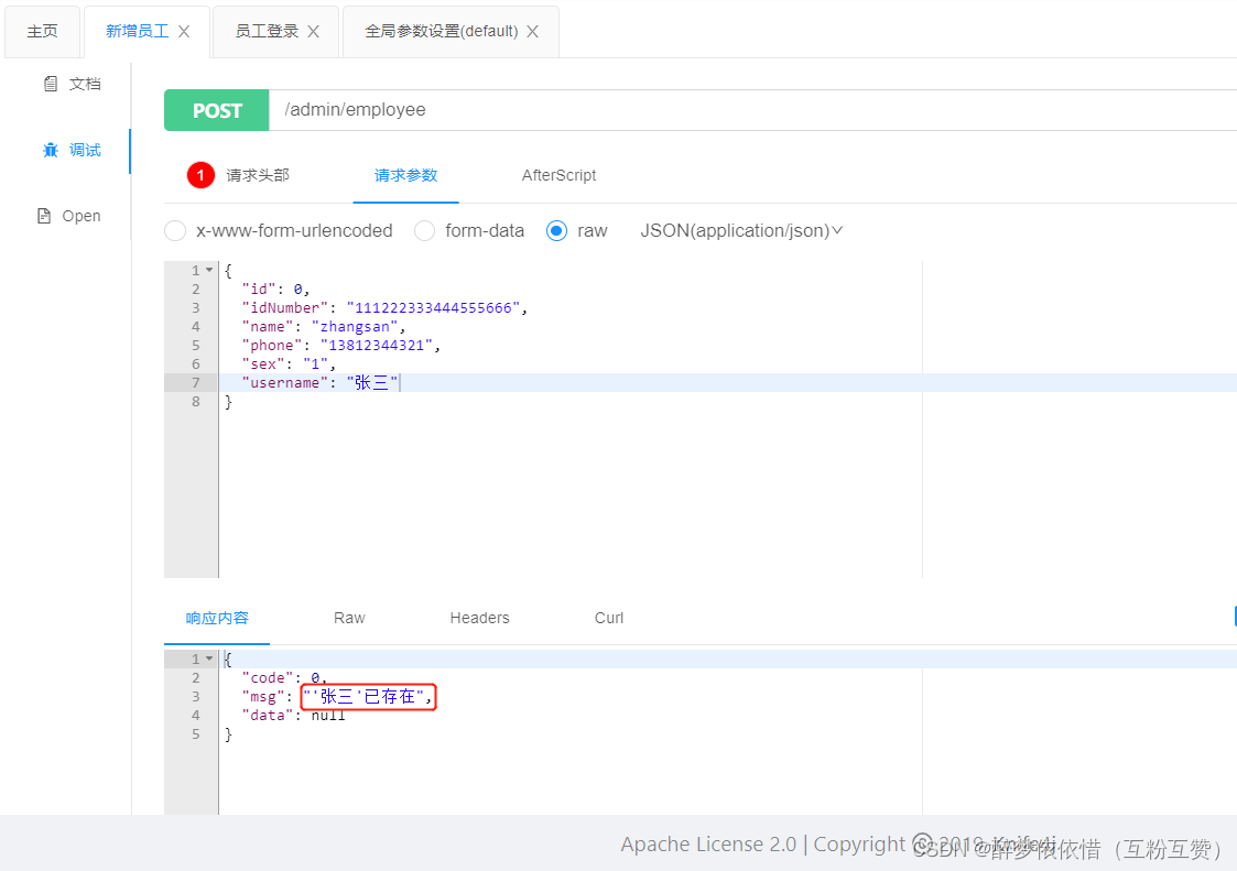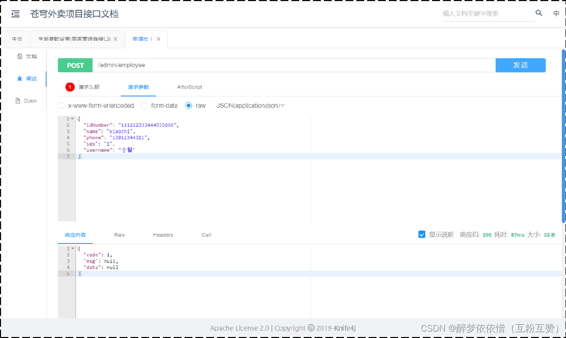 启动服务:访问http://localhost:8080/doc.html,进入新增员工接口