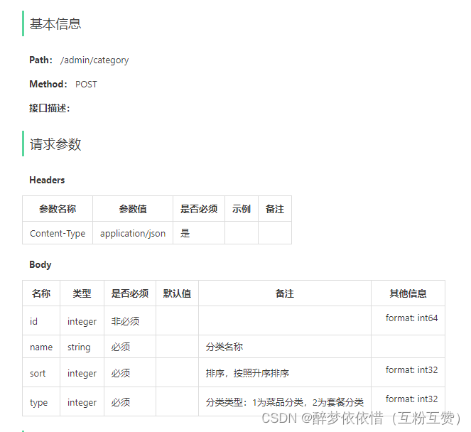 根据上述原型图分析,菜品分类模块共涉及6个接口。