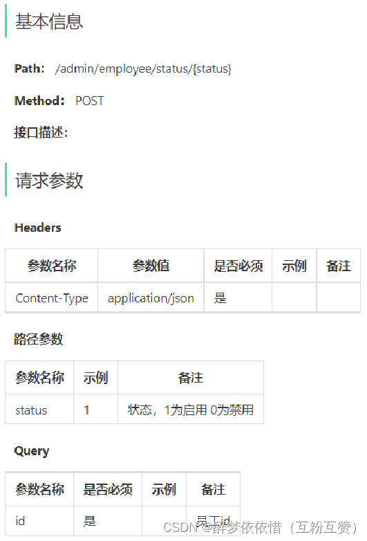 明确新增员工接口的请求路径、请求方式、请求参数、返回数据。