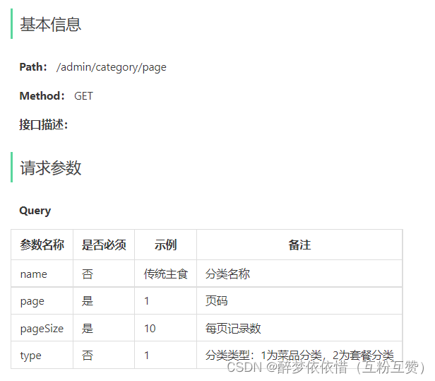 菜品分类分页查询:系统中的分类很多的时候,如果在一个页面中全部展示出来会显得比较乱,不便于查看,所以一般的系统中都会以分页的方式来展示列表数据。