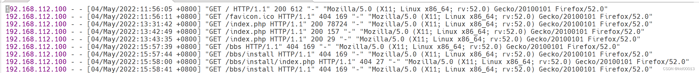 首先,我们想要提取日志文件中的IP地址,就要知道日志文件的格式
