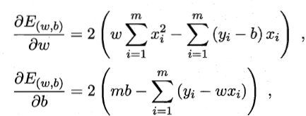 基于均方误差最小化来进行模型求解的方法称为“最小二乘法”(年代久远,楼主记性不好,这种方法好像是高中的时候就有,对参数求导之后让等式为0) :