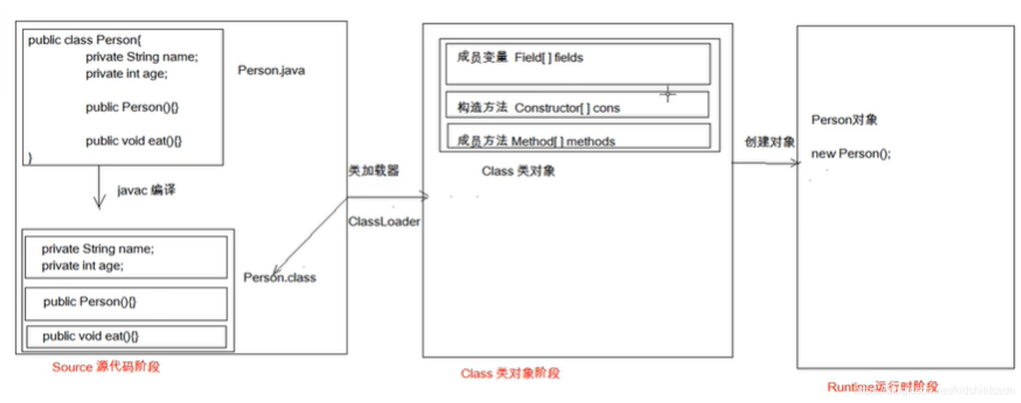 - 类型.class:通过类型的属性class,对应Class类对象阶段获取Class对象的方法,多用于参数的传递