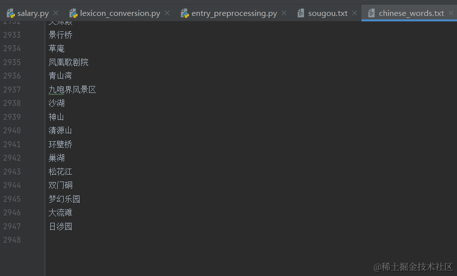 将众多词库解析统合后得到4000多个词条,接着进行去重和预处理