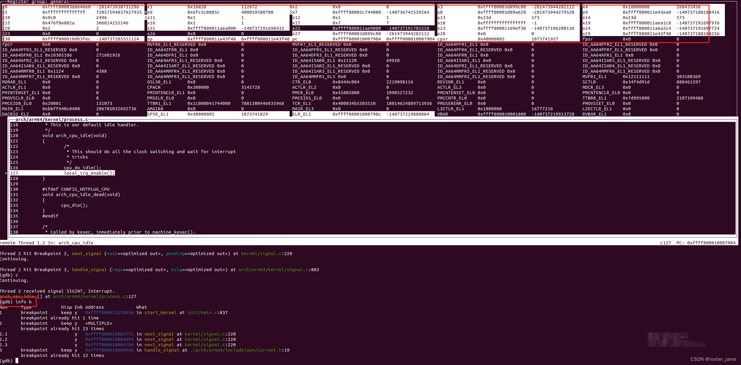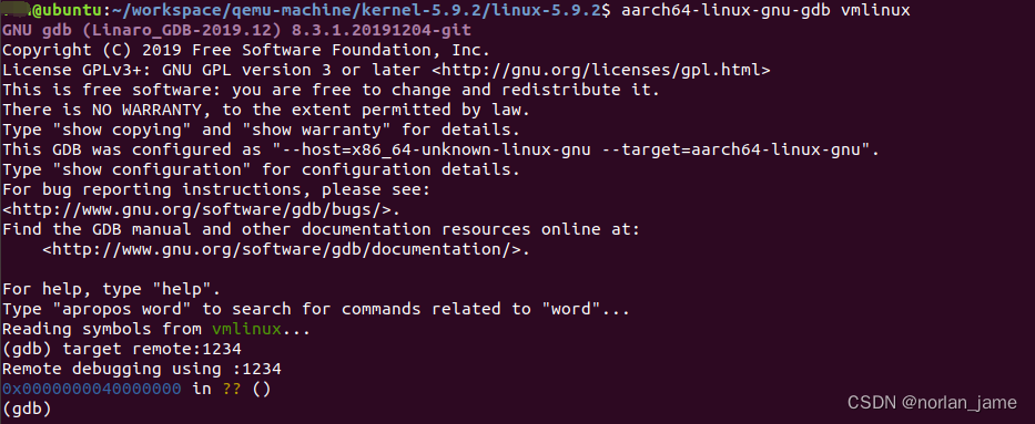 1,使用指令aarch64-linux-gnu-gdb vmlinux,开始gdb调试