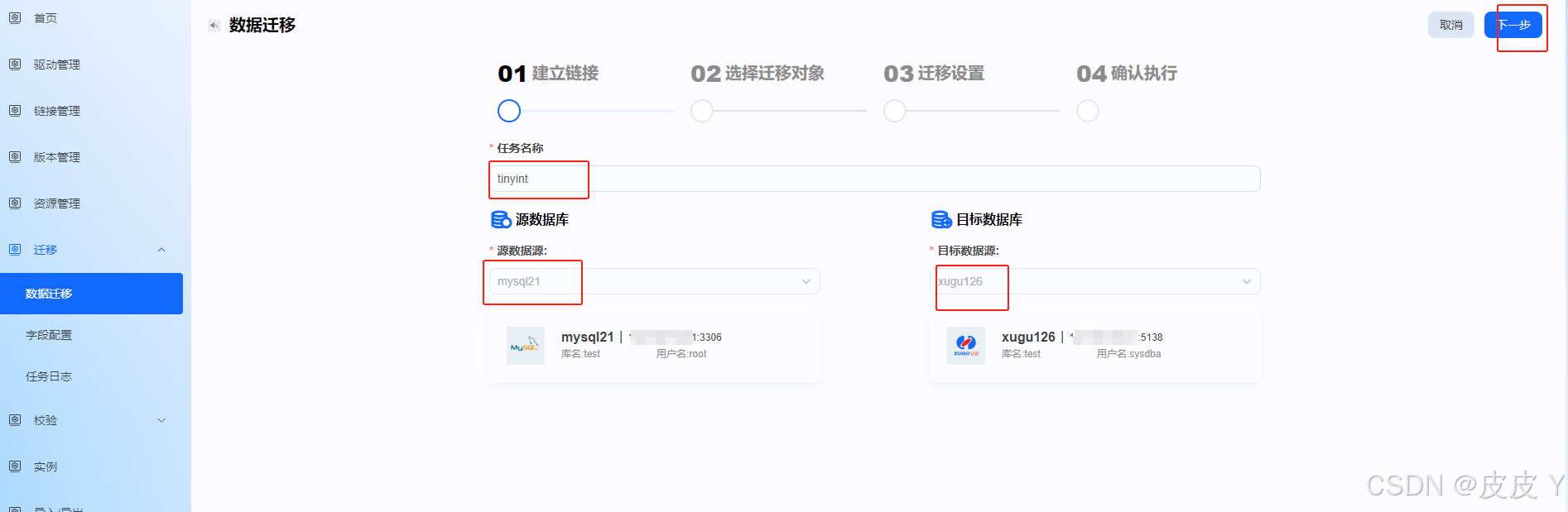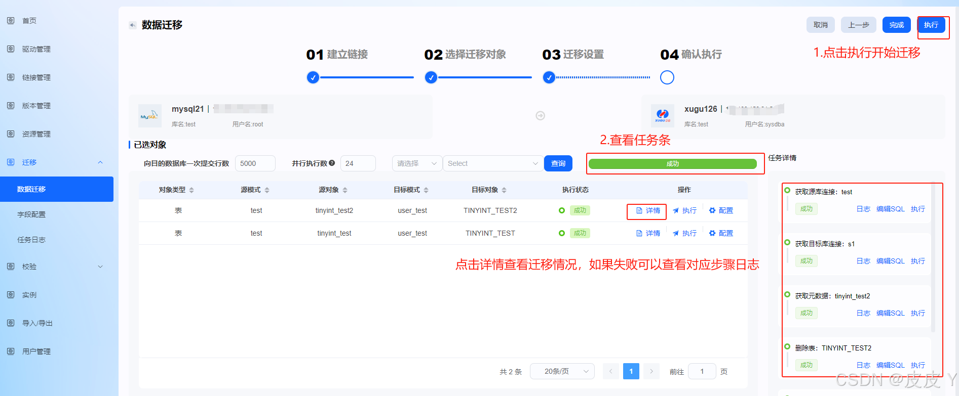 在【迁移-数据迁移-新建迁移】中创建迁移任务