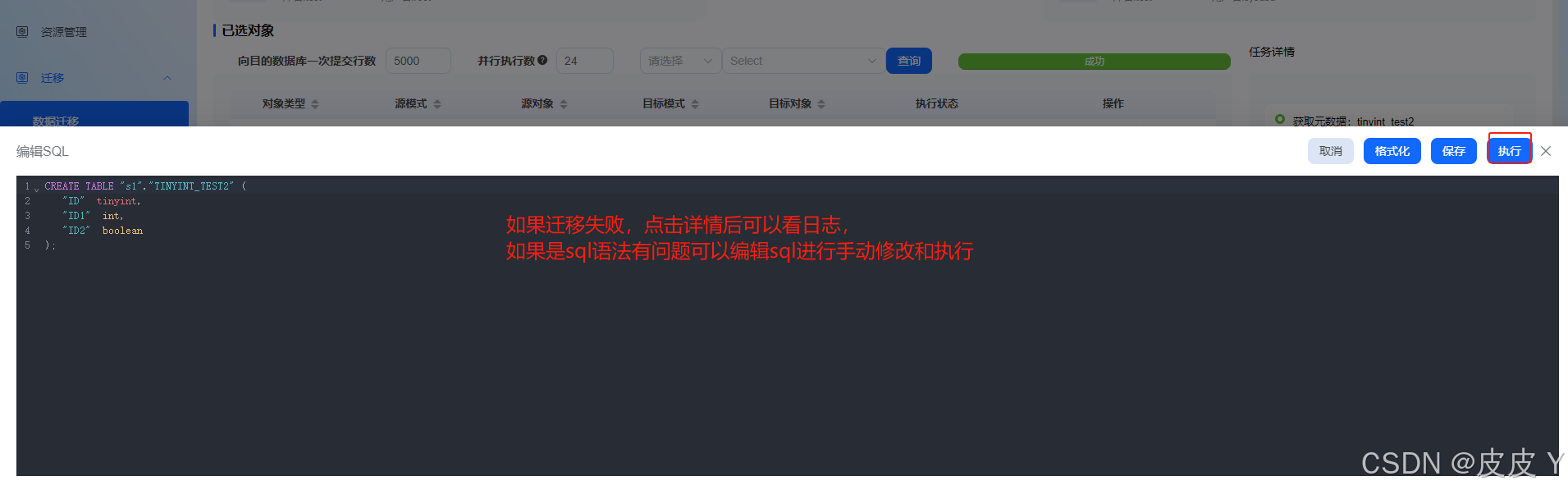 6.如果有对象迁移失败,可以手动修改sql重新执行