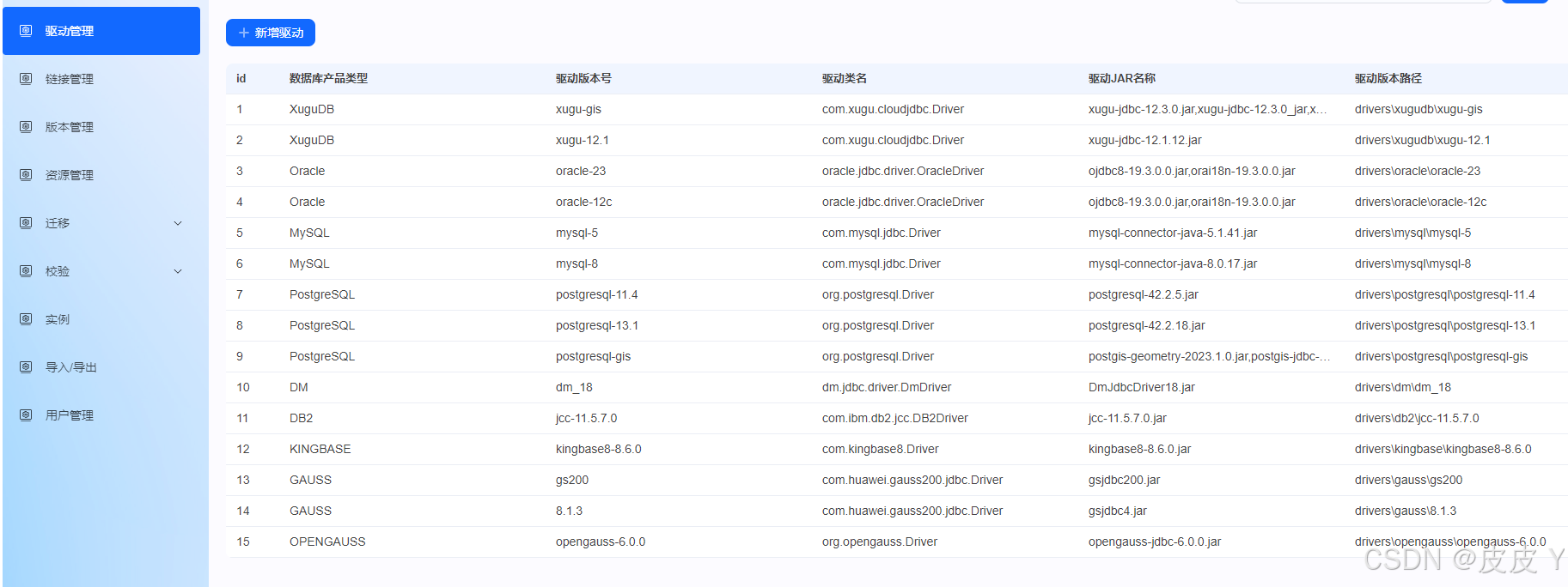 目前已经支持的数据库和版本对应的驱动都在这个地方