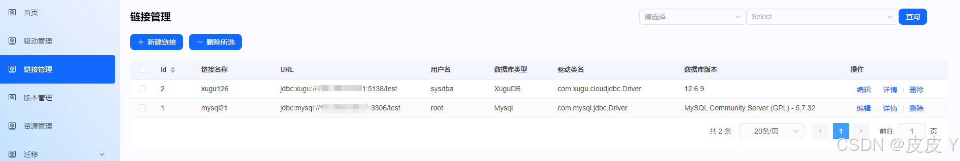 在【链接管理-新建链接】填写数据库连接信息,新建源库和目标库两个链接
