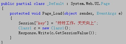 昨天在做优化网站代码的时候,突发奇想想将页面的代码和业务逻辑代码分离开。就是页面下的.cs文件只用于收集前台上的数据而业务处理都放到一些类库中。可是问题来了,在类库中是无法直接使用Session。在网上搜了下有好多(其中很多是相同的)自己一个个试了下很多都不可用,有些说的很言简。结合网上各位大神说的,自己写了个Demo截图如下: