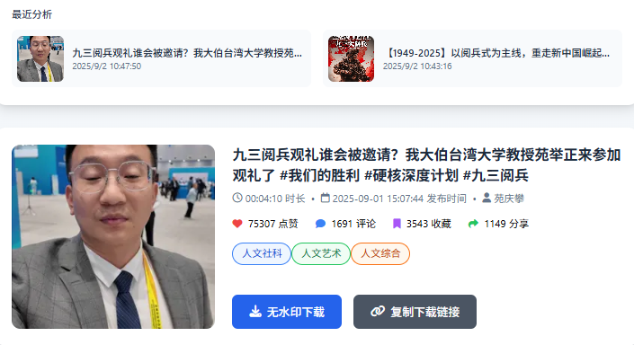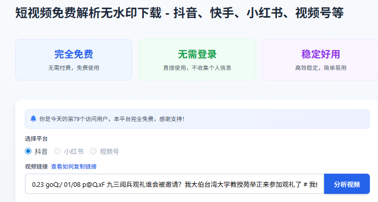 无需登录:打开网站即可使用,省去注册、登录、付费的转化漏斗。对比传统工具平均3步的操作门槛,这里复制链接粘贴就能出结果,把“想用”到“能用”的时间压缩到10秒内。