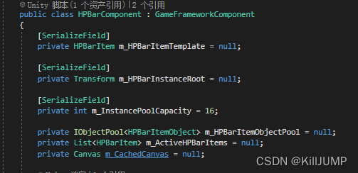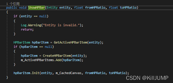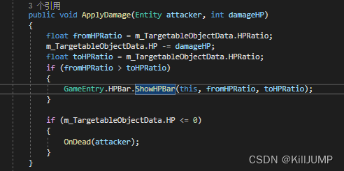 比如在受伤时,出现一个ShowHPBar,方法就写在这个脚本里