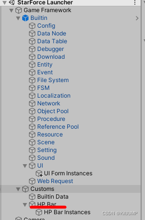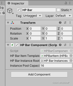 在自定义这里建立一个节点,附上组件 HPBarComponent