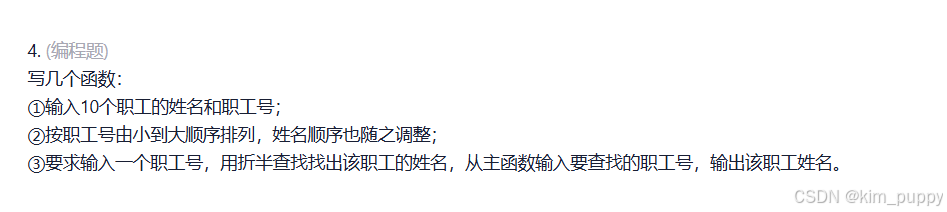 然后第二个我用的是选择排序,在给职工号交换位置的时候,同时将对应位置上的姓名也交换位置即可。