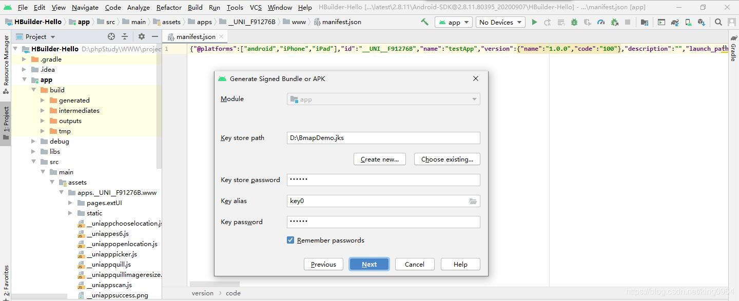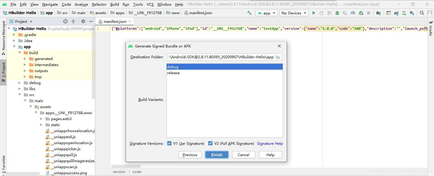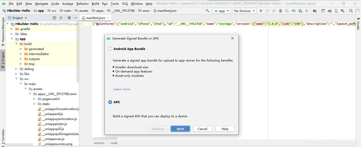 |-- HBuilder-Integrate-AS 集成uni-app或5+ app的最简示例