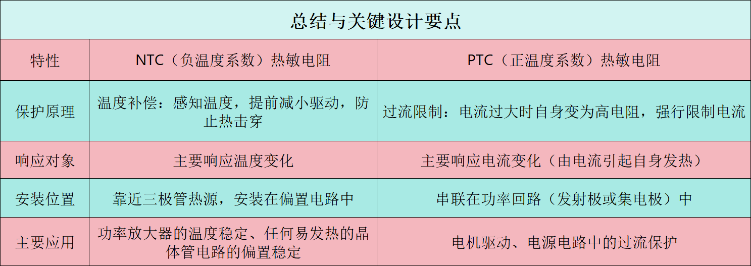 总而言之,热敏电阻通过其独特的温度-电阻特性,以一种简单、廉价且有效的方式,成为保护三极管免受热破坏和电冲击的常用元件。