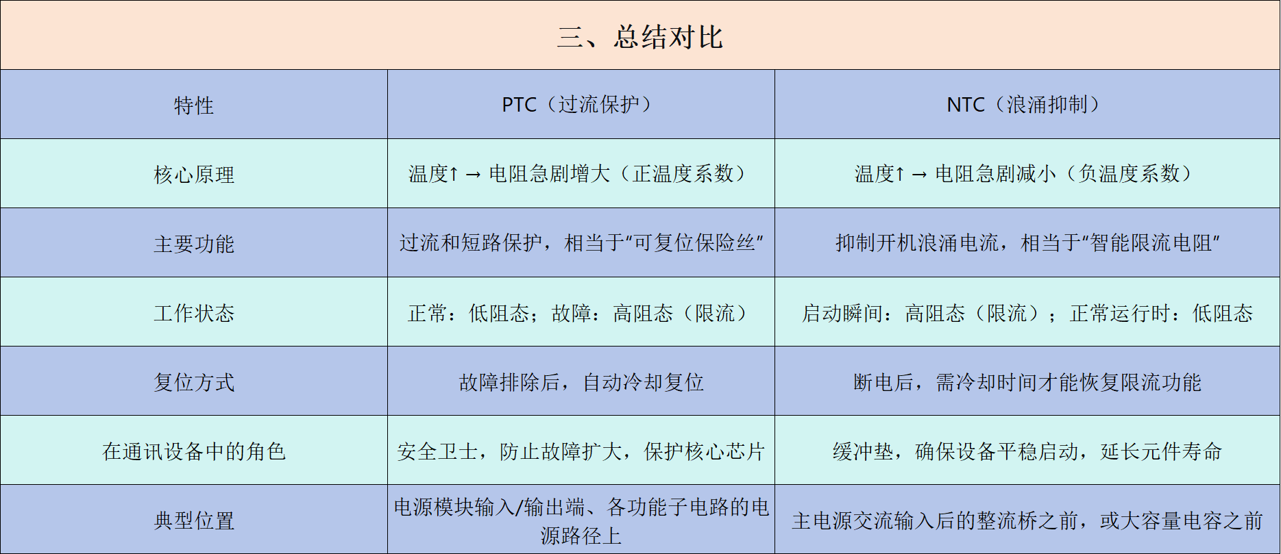 在现代化的通讯设备中,PTC和NTC通常协同工作,共同构建多层次保护: