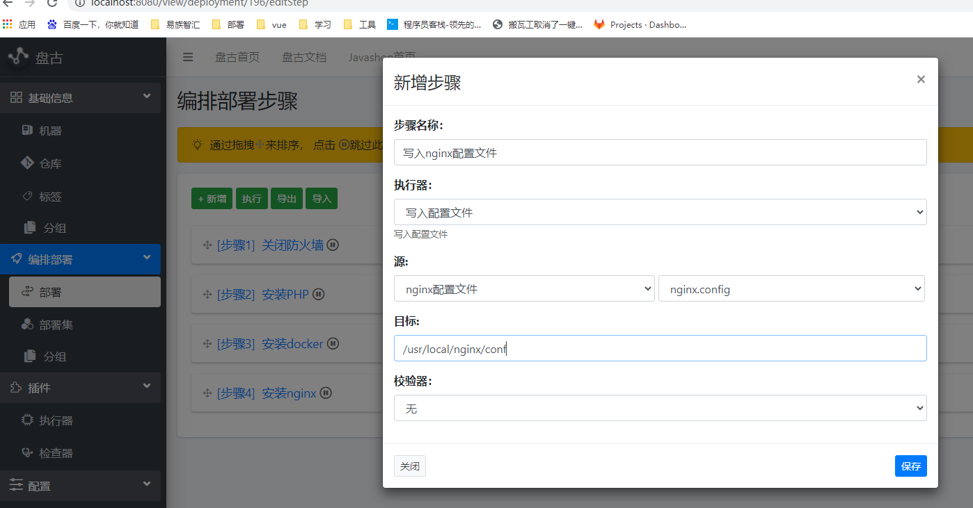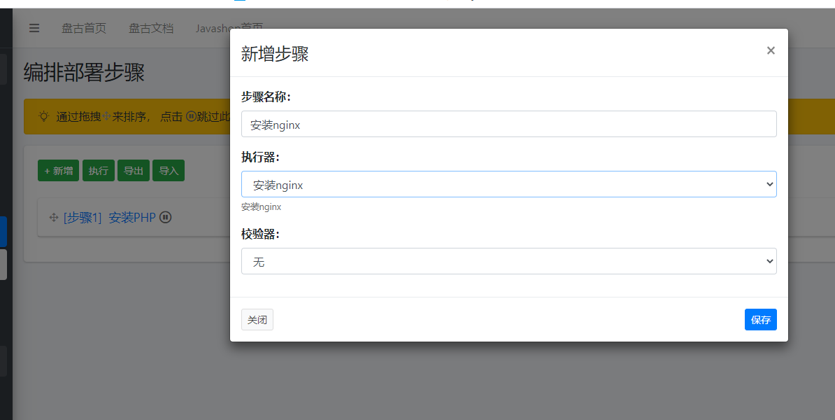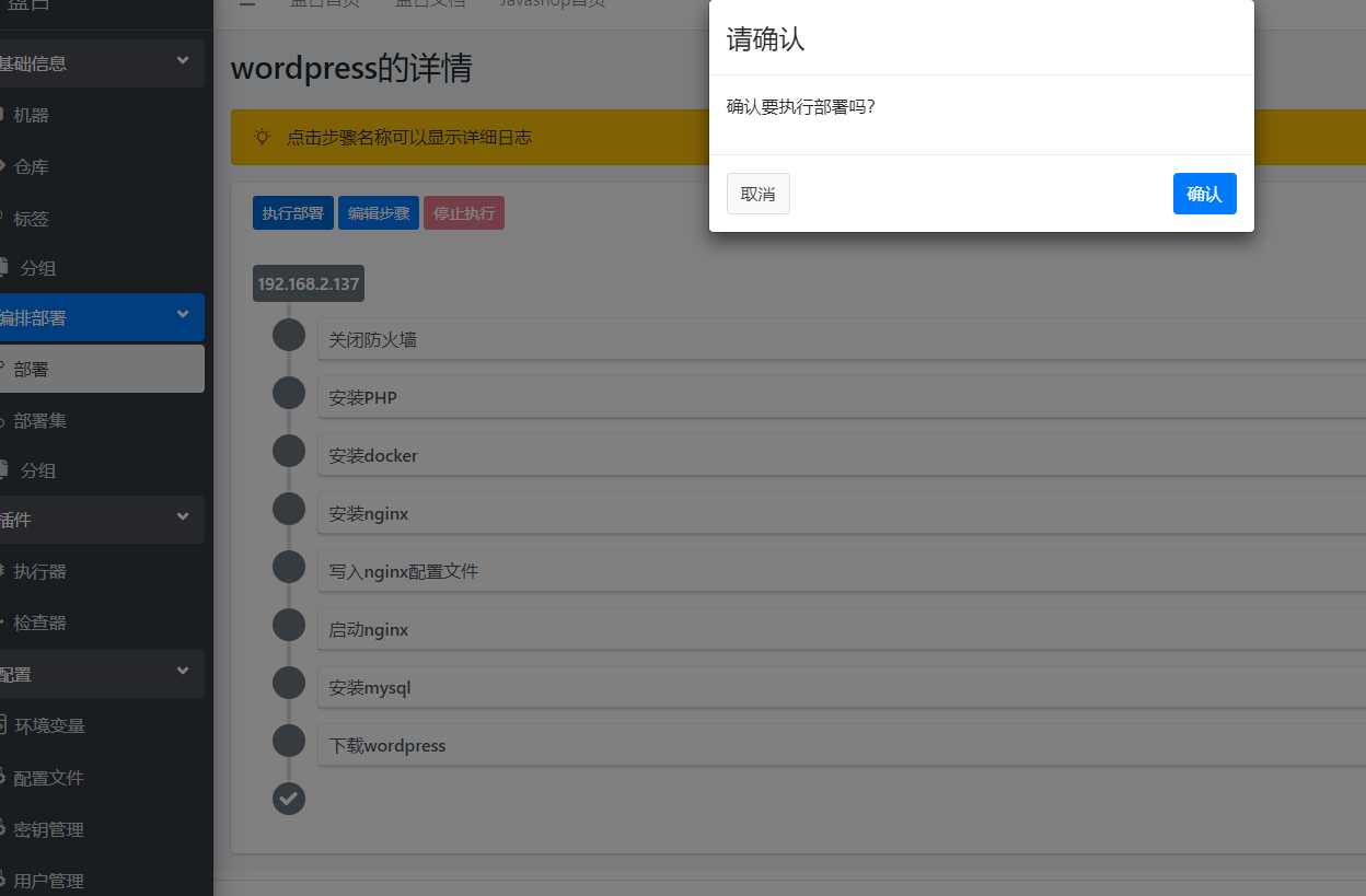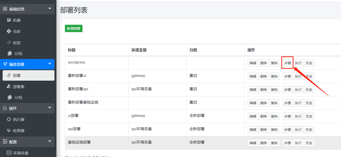 4、点击部署列表中的步骤,新增编排部署中的步骤。