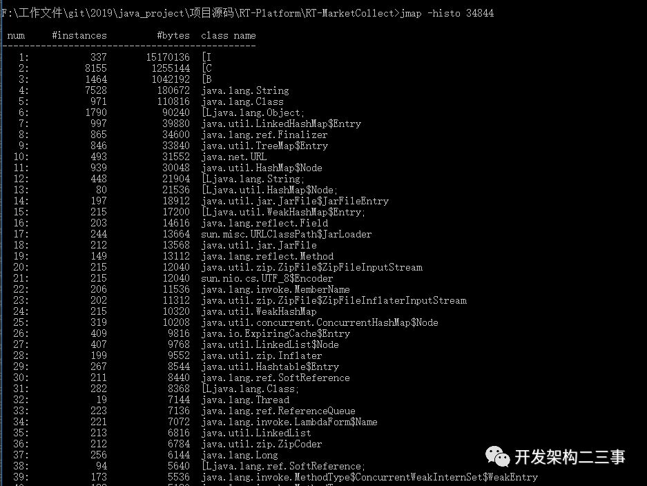 打印当前java堆中所有对象的实例数和大小等,加了live选项则只打印存活的对象