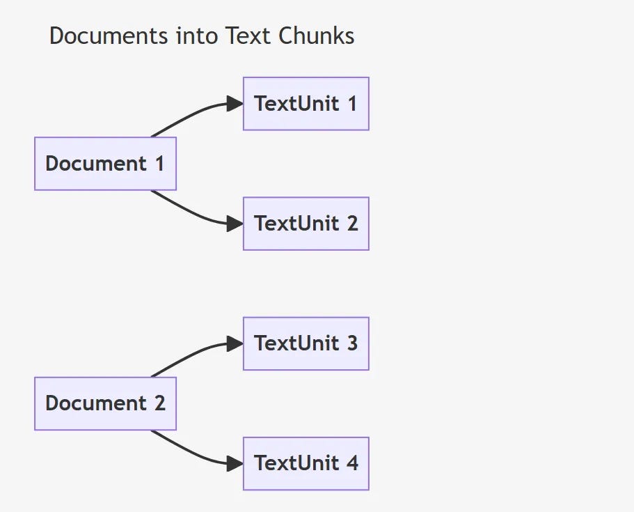 TextUnits,每个TextUnit都与其源文档有一对多的关系。 - 在某些特殊情况下,短文档可能需要合并多个文档来形成一个有意义的分析单元。
