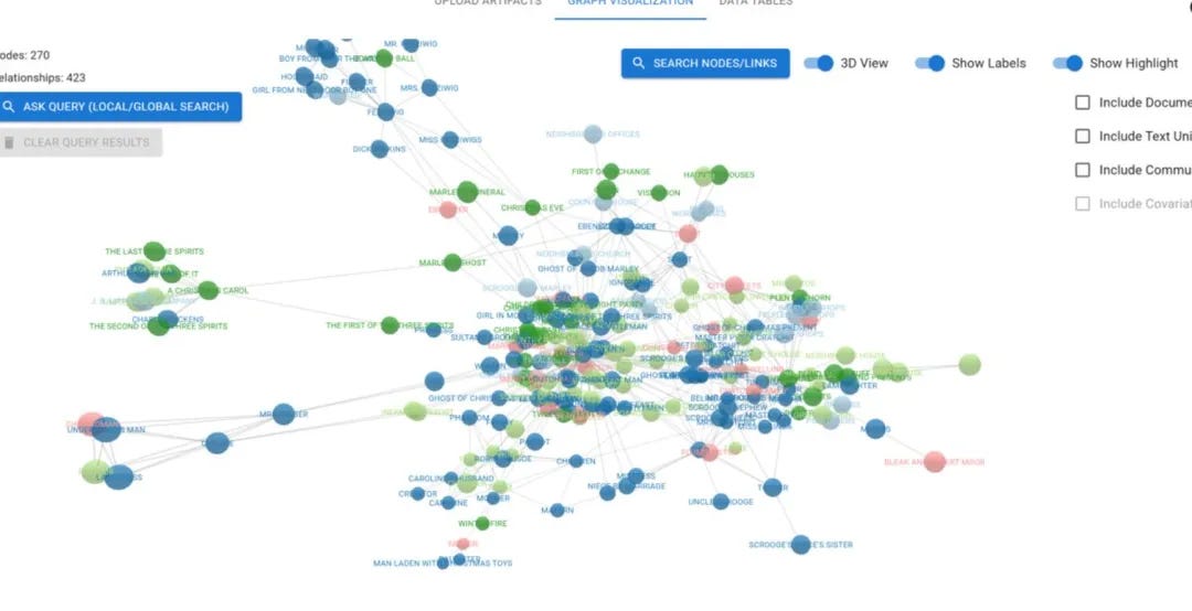 - 作用:这些表格包含了系统生成的社区报告及其嵌入表示,供后续查询、分析和推理使用。