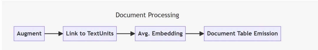 Phase 5 的文档处理阶段将文档与 TextUnits 相关联,并生成文档的嵌入表示,为知识模型提供了文档的语义信息。这一阶段输出的 Documents 表格将作为后续查询和分析的重要基础。