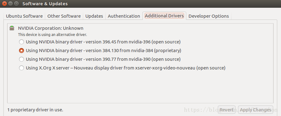 然后,选择在Additional Drivers里选择一个驱动后,点击Apply Changes(我的驱动已经安装过了,所以Apply Changes按钮是灰色的)。