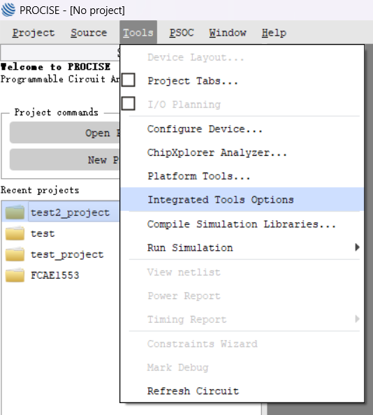 刚安装好后需要先把procise和IAR建立链接,点击【Tools】👉【Intergrated Tools Options】